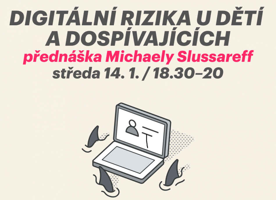 Přednáška Michaely Slussareff v komunitním centru Nesedím, sousedím se zaměřuje na aktuální výzvy, kterým čelí děti a dospívající v digitálním prostředí. Otevře témata jako jsou sociální sítě, online hry, pornografický obsah, závislostní chování, kyberšikana či vliv digitálních technologií na psychické zdraví a vztahy mladých lidí.