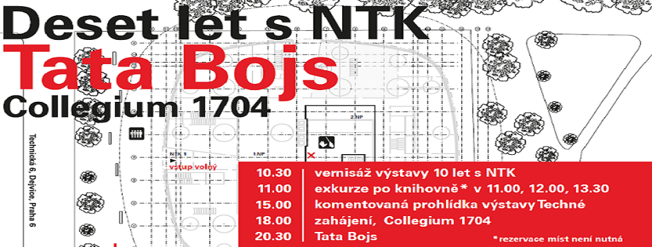 Moderní budova NTK - Národní technická knihovna oslaví 9. září 2019 desáté narozeniny. Při té příležitosti pro vás chystáme bohatý program – přijďte si slavnostní den užít společně s námi!K vidění budou výstavy fotografií či knih z historického fondu, k poslechu koncerty souboru Collegium 1704 a skupiny Tata Bojs. Rovněž si můžete celou knihovnu projít s průvodcem a dozvědět se, jak vznikala, kde fungovala před „dobou dejvickou“ a co všechno dnes svým zákazníkům přináší.Vstup je zdarma, všichni jsou vítáni!