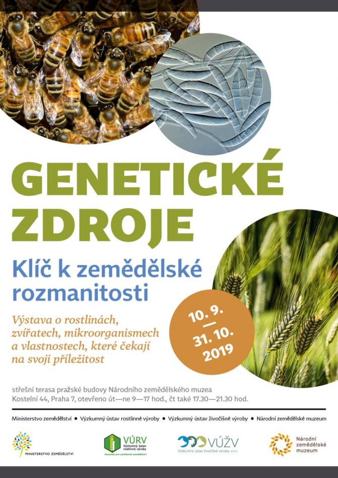 Ve dnech 10. 9. – 31. 10. 2019 se na střeše Národního zemědělského muzea v Praze (Kostelní 44, Praha 7) uskuteční výstava Genetické zdroje: Klíč k zemědělské rozmanitosti, která představuje všechny tři podprogramy Národního programu konzervace a využívání genetických zdrojů rostlin, zvířat a mikroorganismů významných pro výživu a zemědělství (NPGZ).