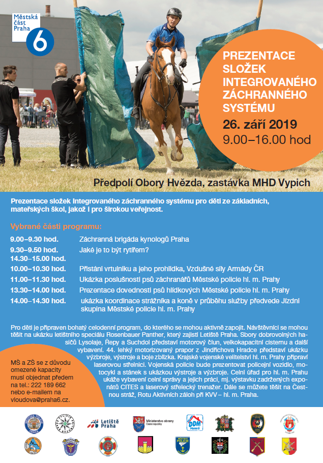 Záchranářské složky se představí dětem ze základních, mateřských škol i široké veřejnosti - čtvrtek 26. září v předpolí Hvězdy od 9.00. Vystoupí policisté, armáda, několik jednotek hasičských sborů a mnoho dalších. Pro děti je připraven bohatý celodenní program, do kterého se mohou aktivně zapojit, přiletí i vrtulník!