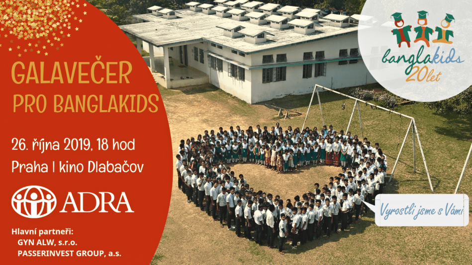 Přijďte oslavit 20 let programu BanglaKids, který od roku 1999 pomohl již 7 200 bangladéšským dětem chodit do školy. Vrcholem galavečera v kině Dlabačov bude benefiční přehlídka „Sárí, která pomáhají“. Sárí předvede řada známých osobností, např. zpěvačka Leona Machálková, dokumentaristka Jana Počtová, herečka Ivana Vaňková, a další osobnosti. Večerem v sobotu 26. 10. 2019 provází sportovní moderátorka ČT Barbora Černošková. Akci udělil záštitu radní hlavního města Prahy Adam Zábranský. Začátek v 18.00 hodin.