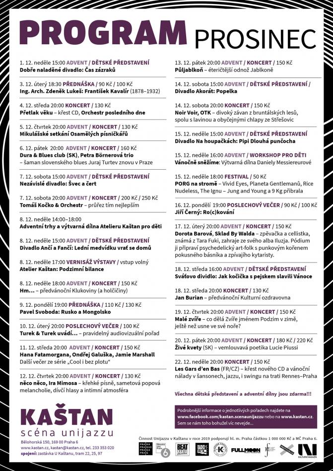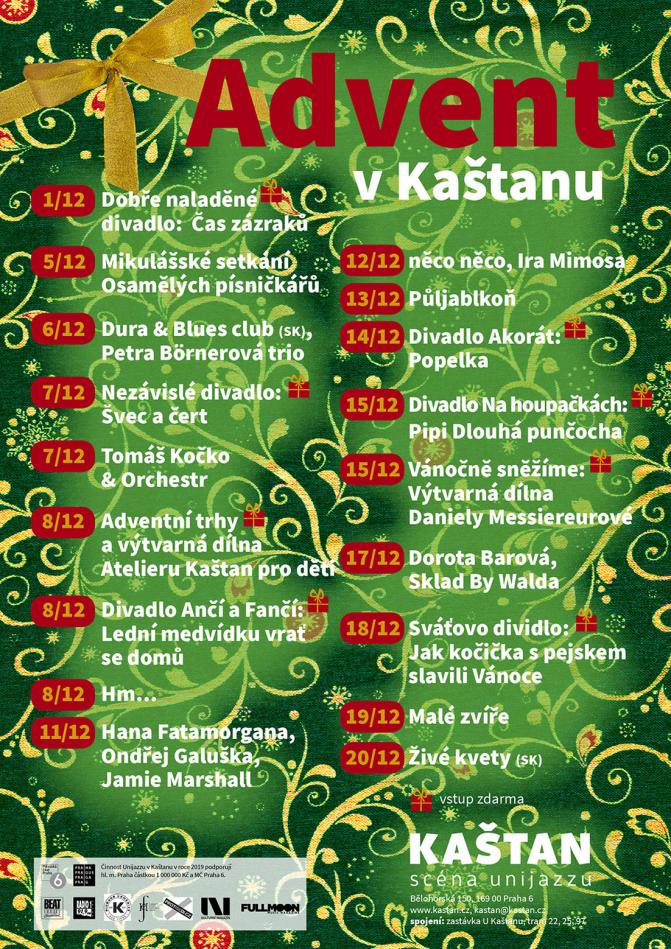 I v prosinci je pro vás v Kaštanu připraven bohatý program, navíc všechny adventní výtvarné dílny a pohádková představení pro děti, kterých je víc než obvykle, jsou zdarma. Těšíme se na vás!!!