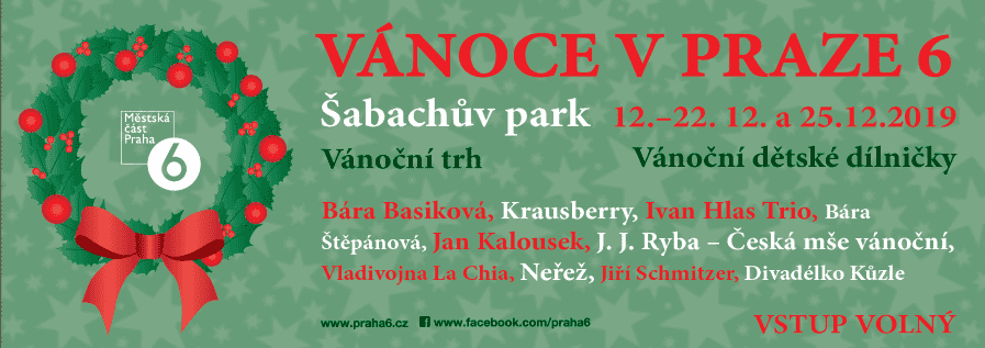 Městská část Praha 6 srdečně zve na již tradiční Vánoce v Praze 6. I letos je pro vás od čtvrtka 12. 12. do středy 25. 12. 2019 připraven bohatý program v Šabachově parku, včetně vánočního trhu, občerstvení a dětských dílniček.