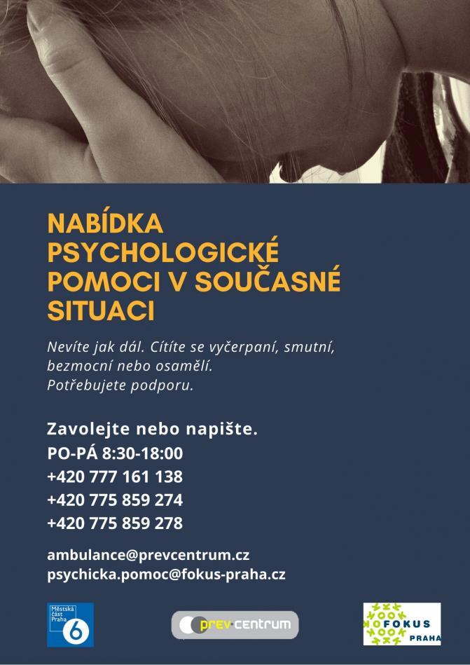 Současná situace je náročná po všech stránkách, pro všechny. Společně s psychology z Břevnova jsme pro vás zřídili dvě telefonní linky, kde vám rádi poradí, jak se z toho všeho nezbláznit. Držte se! Kontakty na další linky psychologické pomoci a linky důvěry najdete >>ZDE<<
