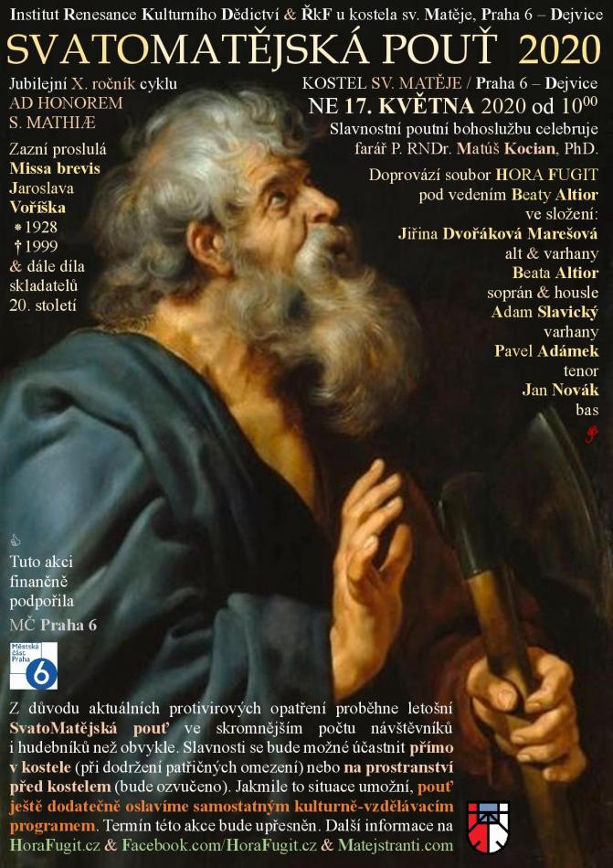 Jubilejní X. ročník cyklu Ad honorem St. Mathiae. Tradiční Svatomatějská pouť doprovázená hudbou J. Voříška a dalších skladatelů 20. století v podání souboru Hora Fugit, tentokrát v komornějším obsazení.