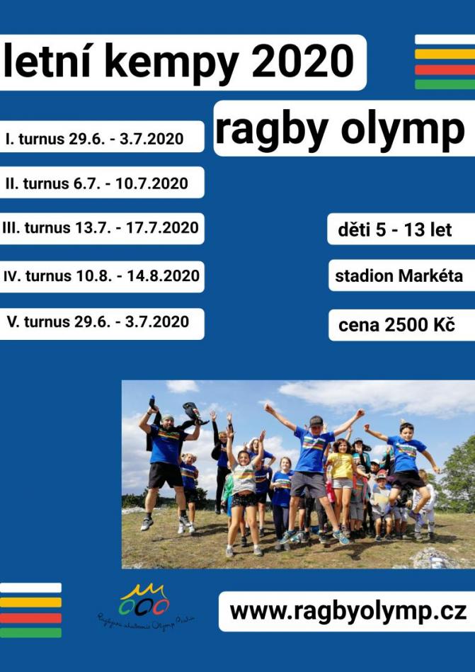 Ragbyová akademie Olymp Praha pořádá i letos letní příměstské kempy pro mládež 5–13 let. Z důvodu absence sportování v jarních měsících nabízíme pět turnusů. Hlavní náplní bude pestré sportování – nejen ragby, doplněné aktivitami venku i uvnitř i klidovým režimem.
