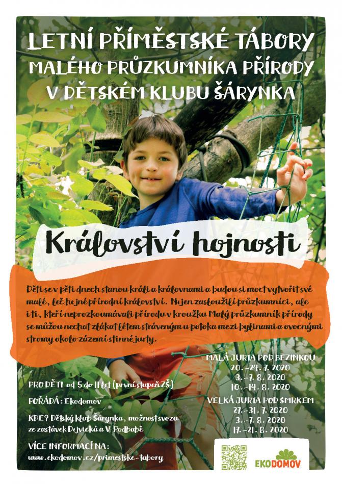 Tábory probíhají v zázemí Dětského klubu Šárynka, v okolí a zázemí ZŠ Zdiby a v okolí a zázemí ZŠ Velké Přílepy. V Roztokách u Prahy využijeme soukromé renovované maringotky na prostorné zahradě a stromů a lesíku v jejím okolí.