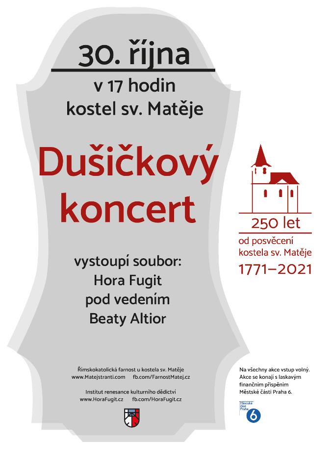 Srdečně zveme na Dušičkový koncert u sv. Matěje k oslavě všech svatých i našich věrných zemřelých konaný v rámci jubilejních 250 let kostela sv. Matěje.