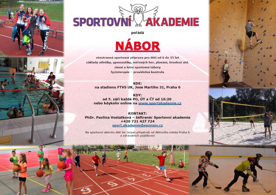Sportovní akademie při FTVS UK pořádá nábor do klubu všestranné sportovní přípravy pro školní rok 2022/2023.