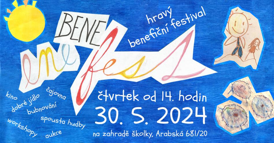 Srdečně vás zveme na hravý benefiční festival na zahradu školky FMŠ Arabská. Můžete se těšit na hudební, divadelní, taneční a bubenická vystoupení, která se budou prolínat s workshopy a dílničkami. Nebude chybět dobré jídlo a pití. Celé odpoledne si budeme hrát, bavit se, zpívat, tančit, dobře jíst a společně slavit nadcházející Den dětí.