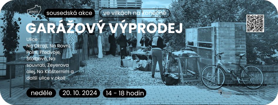 Zveme sousedy z Petřin a okolí na tradiční garážový výprodej, který se koná v ulicích Polní, Na rovni, Štolbova a Na Okraji a v dalších. Přijďte si nakoupit, popovídat se sousedy a ochutnat domácí koláče, domácí limonádu, čaj nebo kávu.